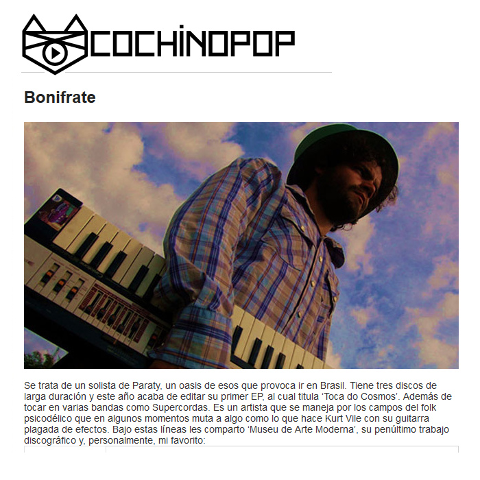 Bonifrate no site venezuelano Cochinopop: alternativas psicodélicas à farofada musical da Copa